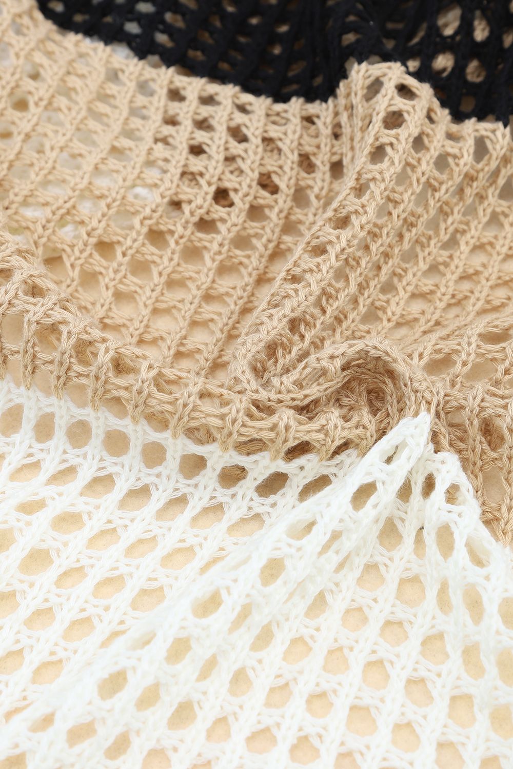 Back To School Sweater - Twisted Back Color Block Long Sleeve Knit Cover Up