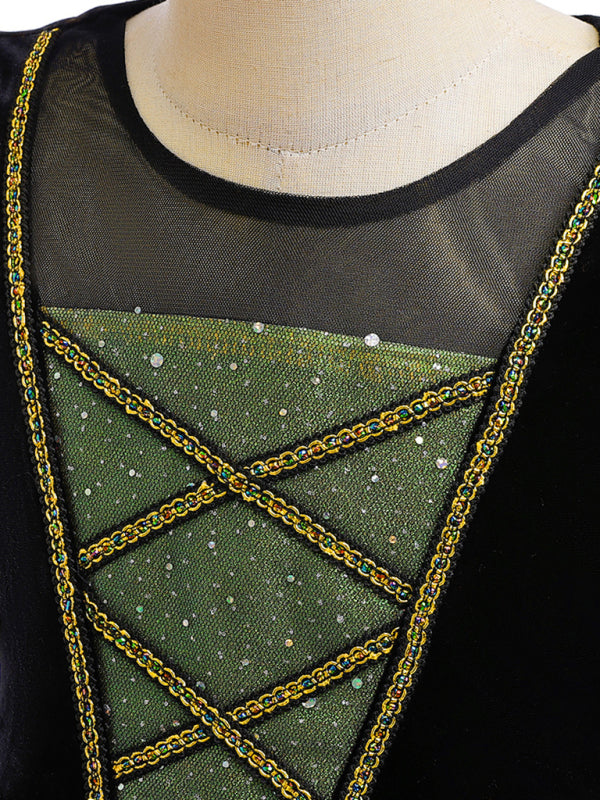 Girls Witch Dress Halloween Costume - Green & Golden Party Outfit